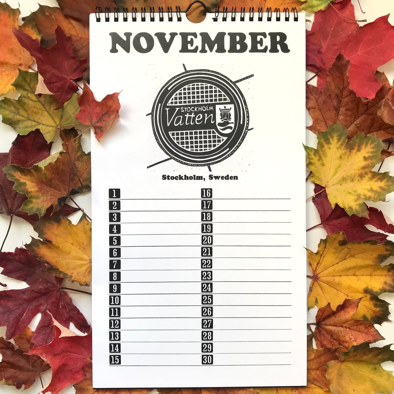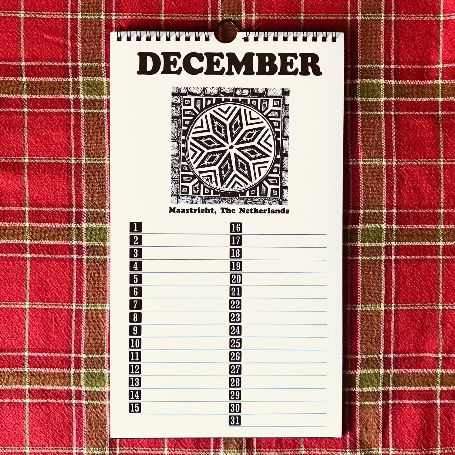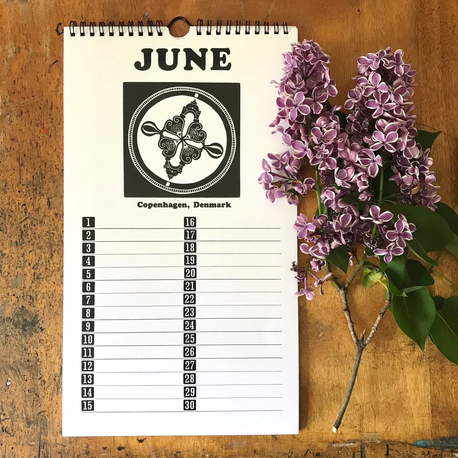 Each month features a European Linocut design along with letter press numbers (printed digitally)