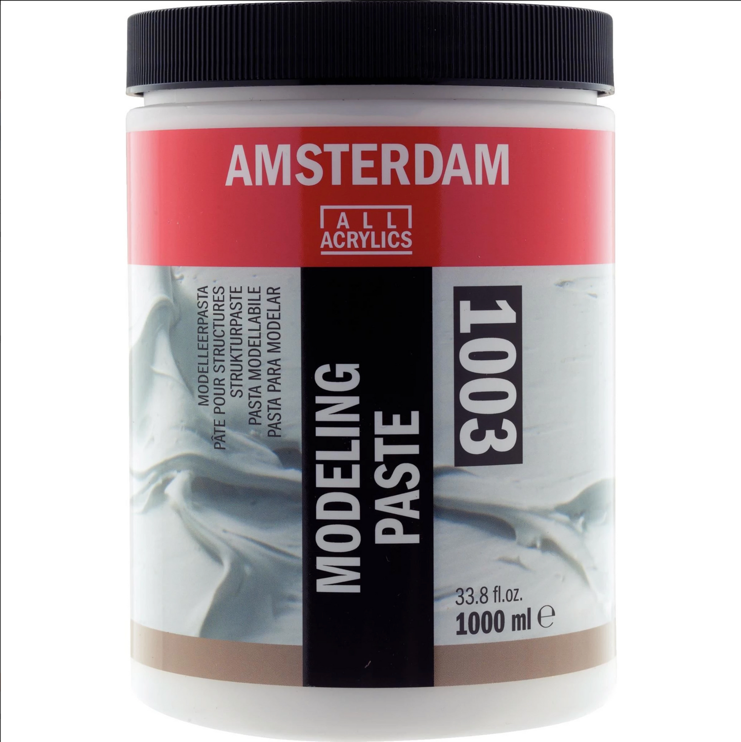 Add some texture to your work while creating the perfect absorbent base for your painting. With Amsterdam modeling paste, you can make relief backgrounds that are suitable for acrylic and oil paints. The modeling paste can be used by itself or in combination with Amsterdam acrylic colors. You can mix the colors with the modeling paste in any ratio. The paste is pigmented with Titanium White, so your color will turn out lighter than it is in the tube.