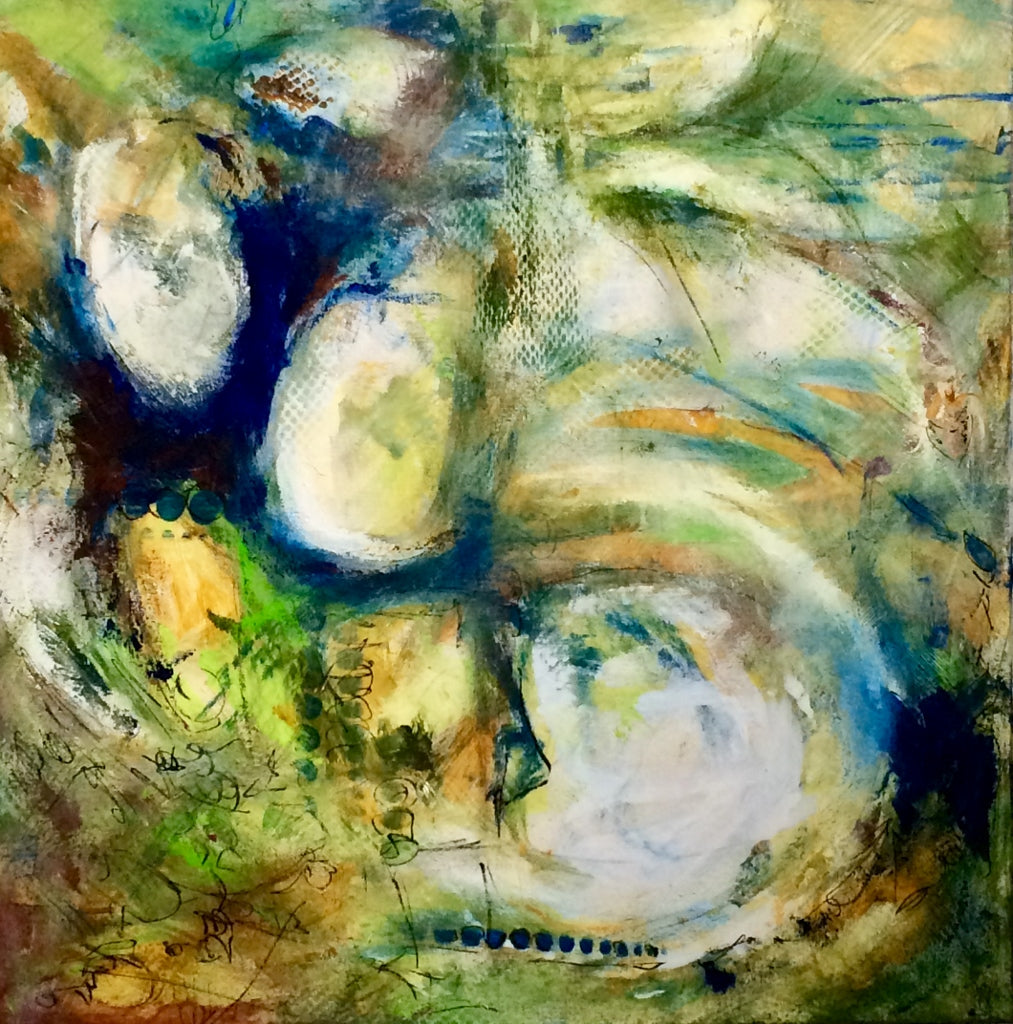 An accomplished florist, stylist and musician, Kay traded in her florist’s knife for a palette knife and began her art life journey. This path has taken her from landscapes in oil to expressionistic works using acrylics and many different elements of mixed media. She has studied with a select number of artists who have guided and inspired her development.