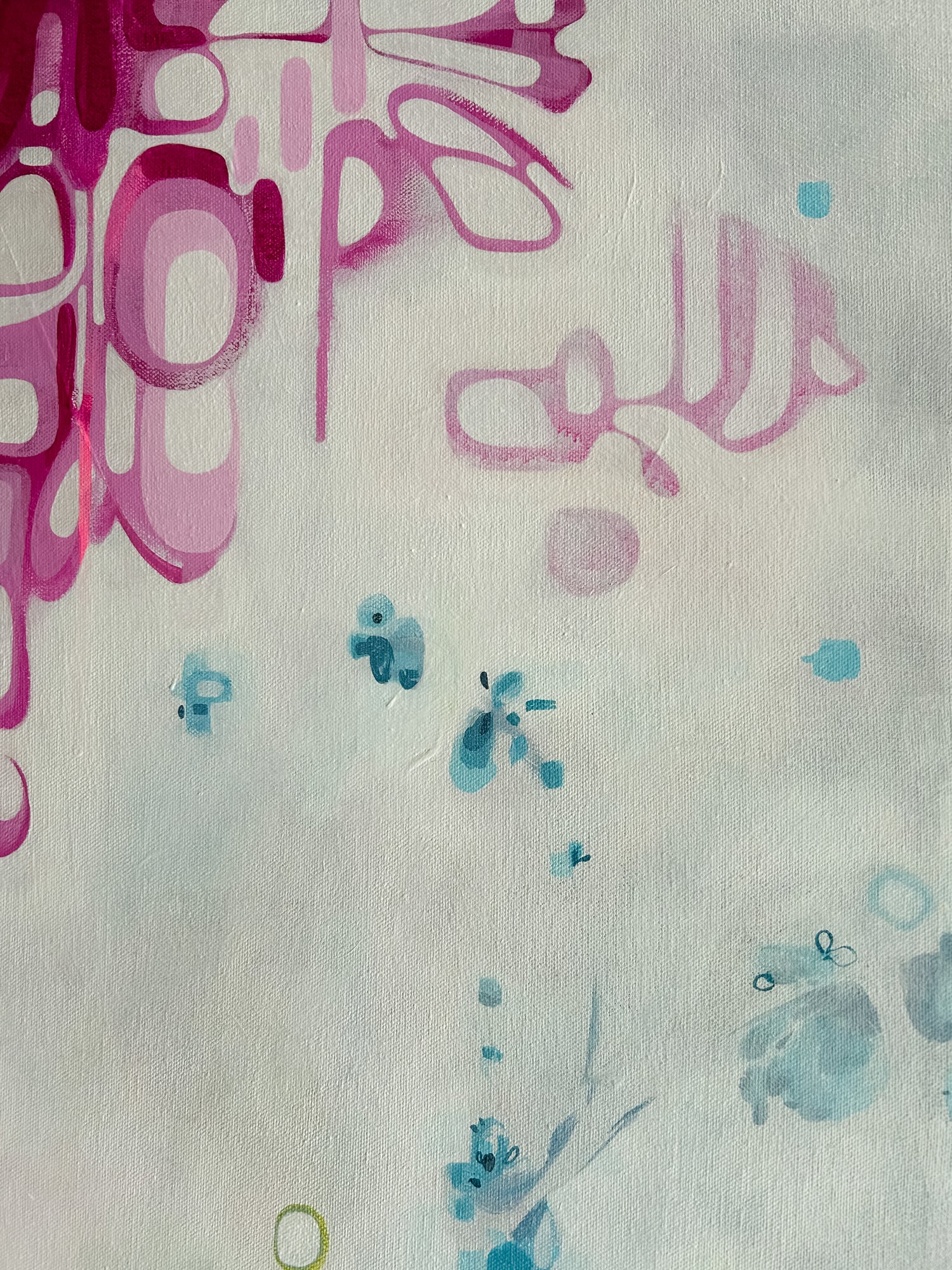 “One of my first fully abstract intuitive paintings, Up has shown me how important it is for an artist to trust the process of creation. I may never know how the painting will look until it is basically complete. And that is okay. I consider myself a channel for creation, not an individual who just wants to be an artist. Whatever needs to be created will be, and it is up to me to relinquish judgment, trust my creator, and be open to what comes.”