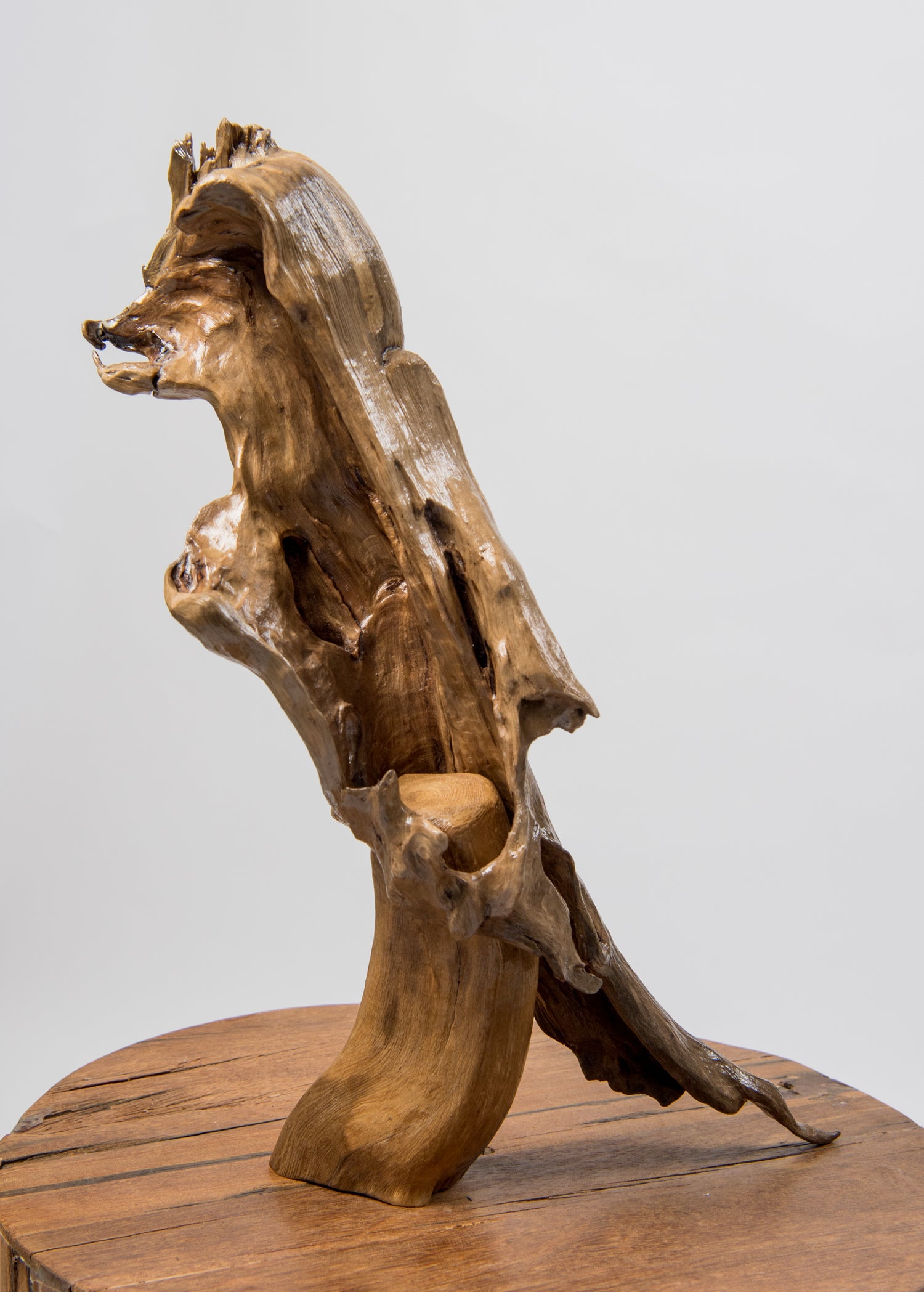 Sculpture en bois flotté sculptée à la main, vernie