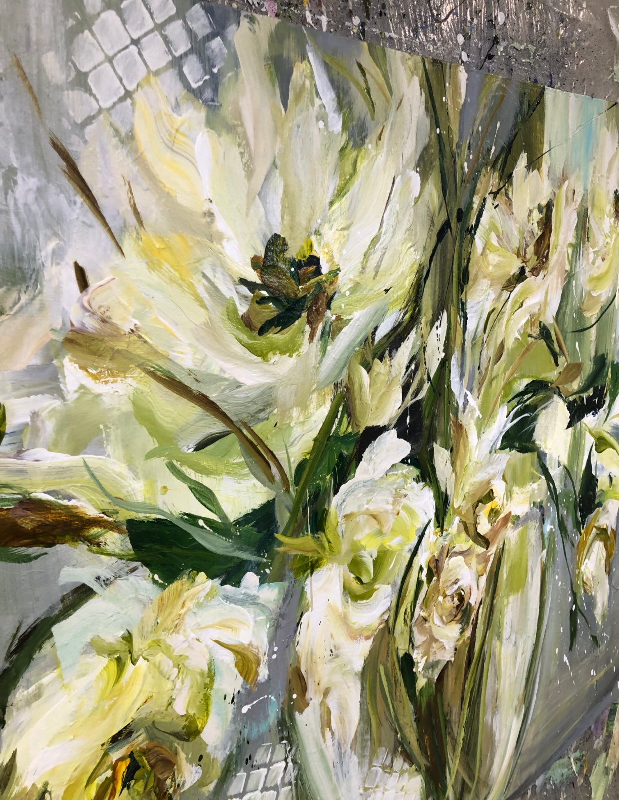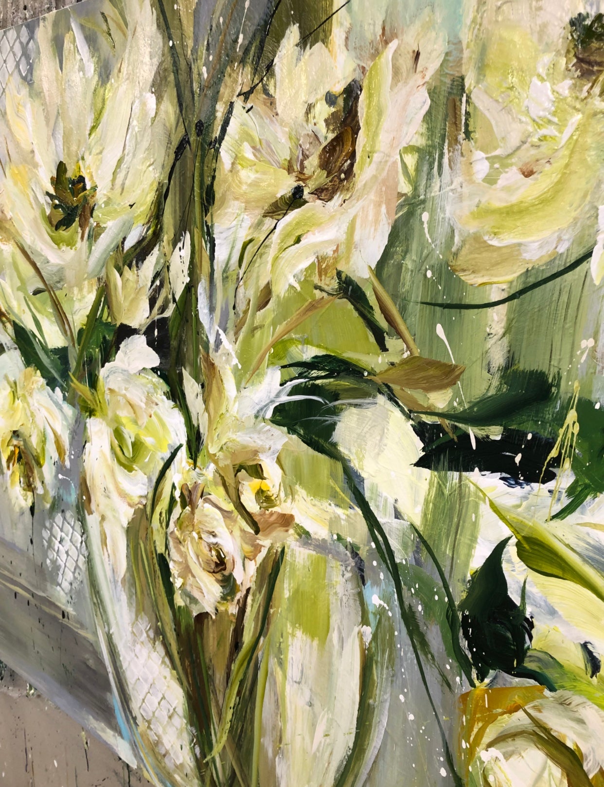 Experience the beauty of nature with Loves Reflection by Denise Lini. This stunning acrylic painting captures the delicate details of flowers with a touch of color, bringing a sense of calm and serenity into your space. Elevate your decor with this expertly crafted piece.