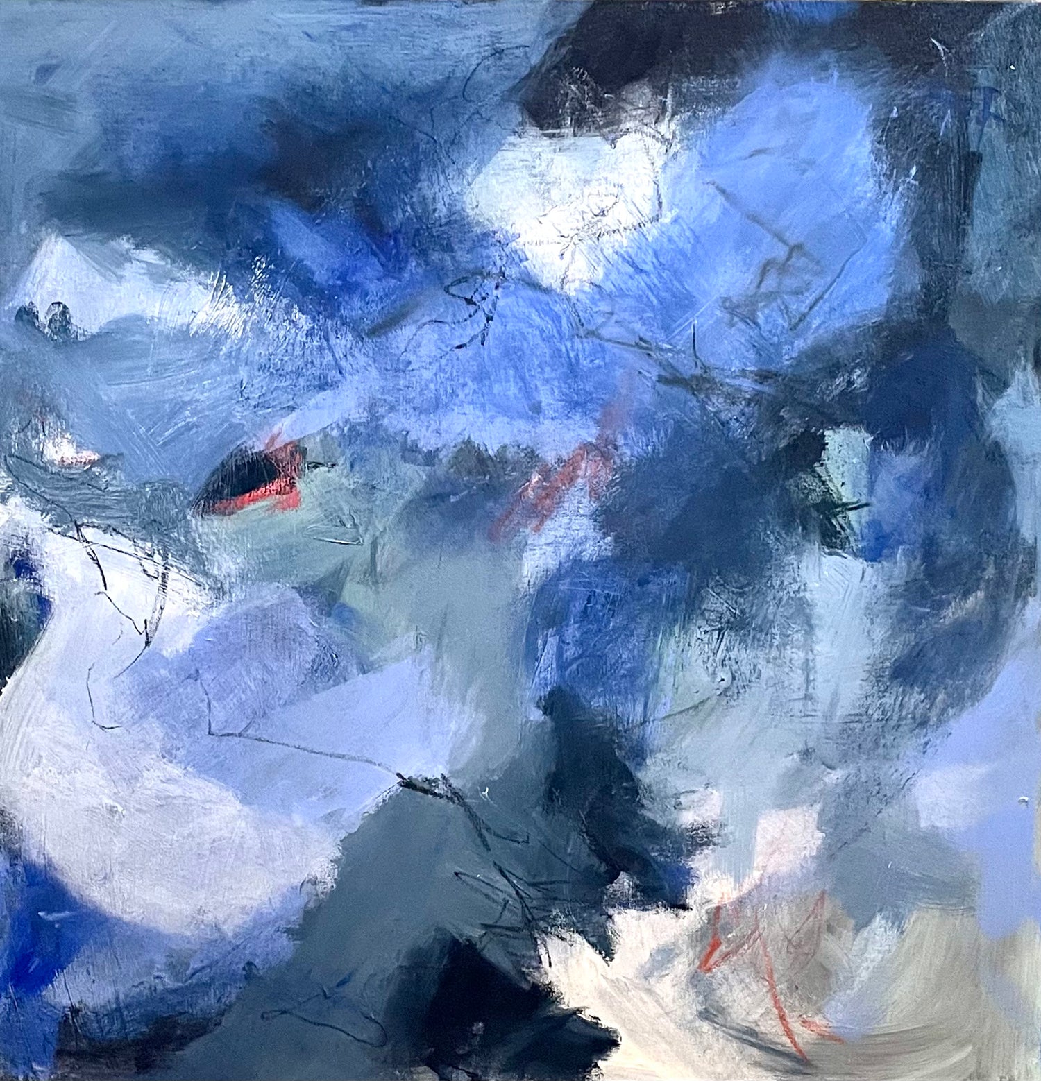 Fan of Blues? Look no further than this beautiful piece. Filled with depth, blues and just enough hints of orange to make the whole piece POP this piece is the perfect addition to any room. Need some calm in the office? Looking for a piece in the bathroom? You'll never bore of looking at this piece!