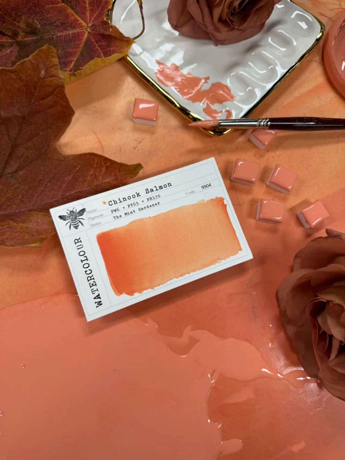 Paint Maker’s Notes: Chinook Salmon is a combination of Hansa Yellow Deep (PY 65), Naphthol Red (PR 170), and Titanium White (PW 6) pigments.