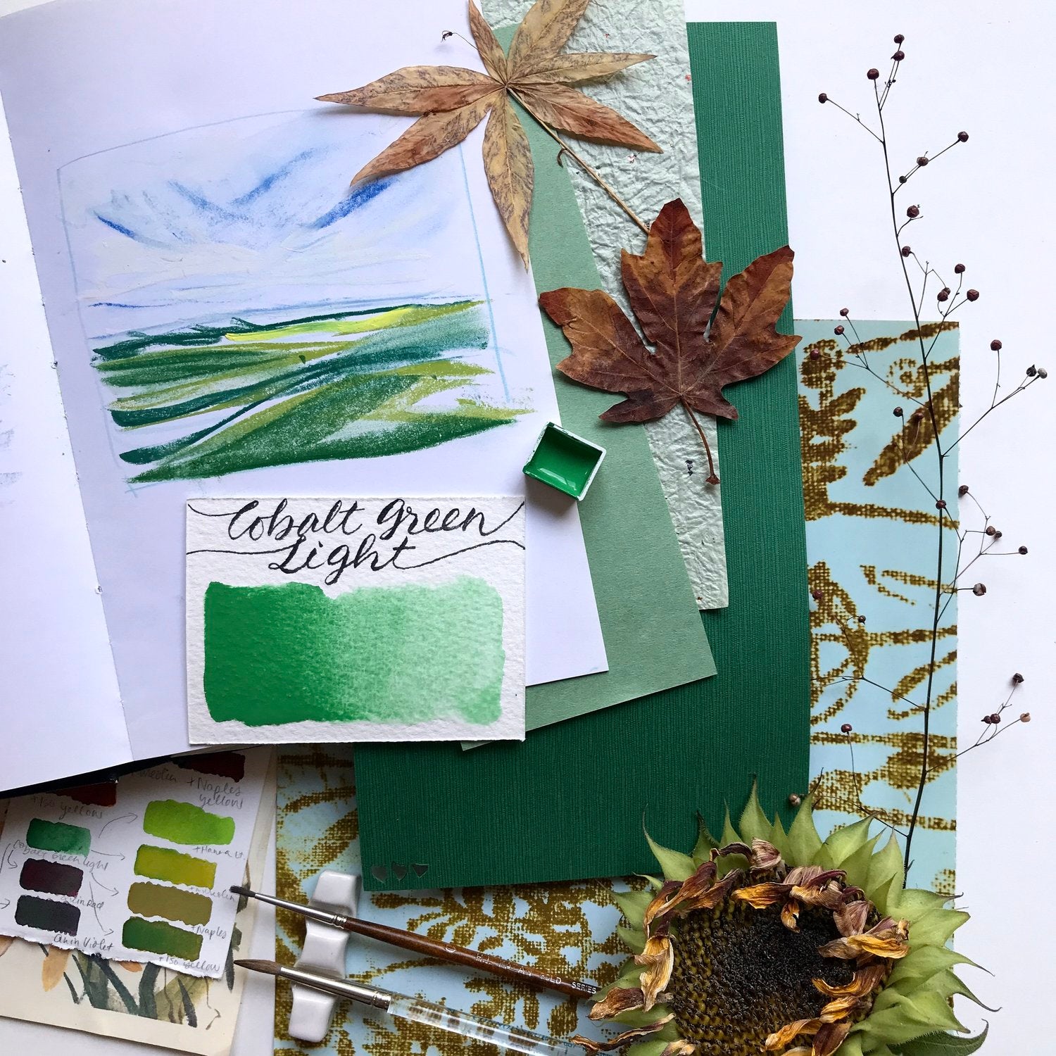 Cobalt Green Light is a clean, semi-transparent grass green perfect for use in landscapes, florals, still life work, and illustration work.